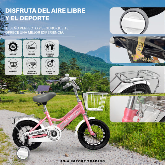 Bicicleta Infantil Aro 12 con Ruedas y Frenos Delanteros y Traseros - SIBOG