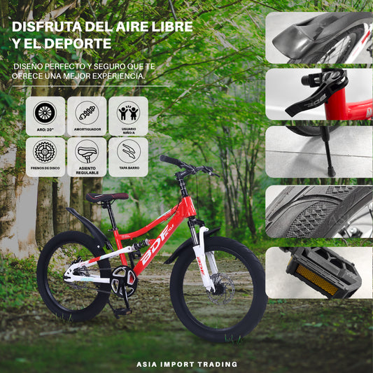 Bicicleta MTB Aro 20 Roja Doble Suspension