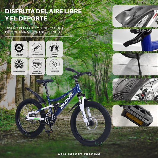 Bicicleta MTB Aro 20 Azul Doble Suspension