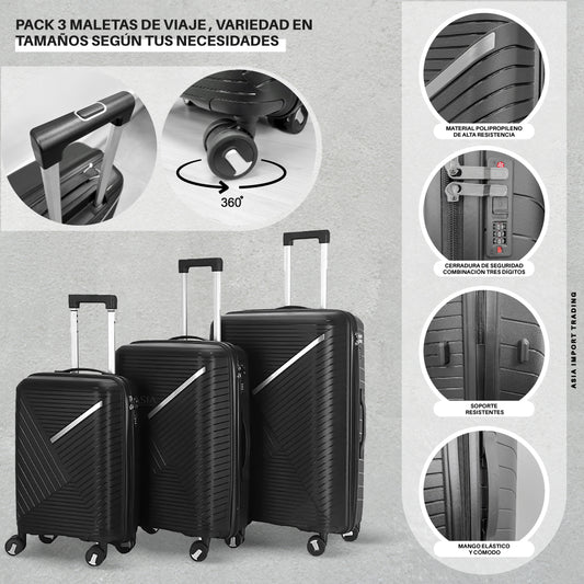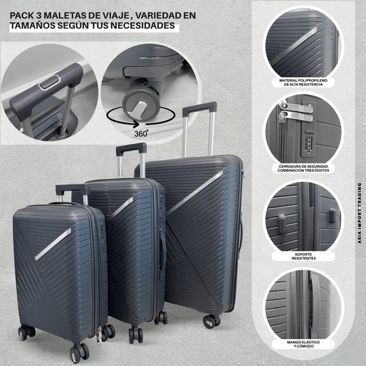 Set de 3 Maletas Rígidas color Gris Oscuro