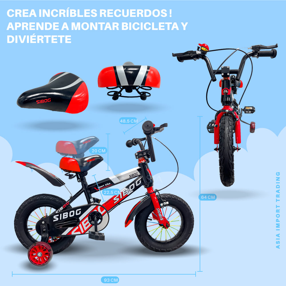 Bicicleta Infantil Aro 12 con Ruedas y Frenos Delanteros y Traseros - SIBOG