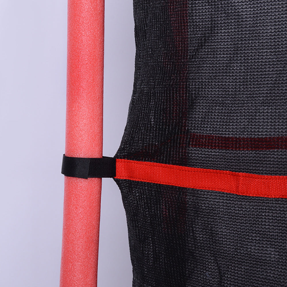 • Protección Adicional: La red que rodea la base del trampolín evita que los objetos pequeños, mascotas o niños entren debajo, añadiendo una capa extra de seguridad y tranquilidad para los padres.