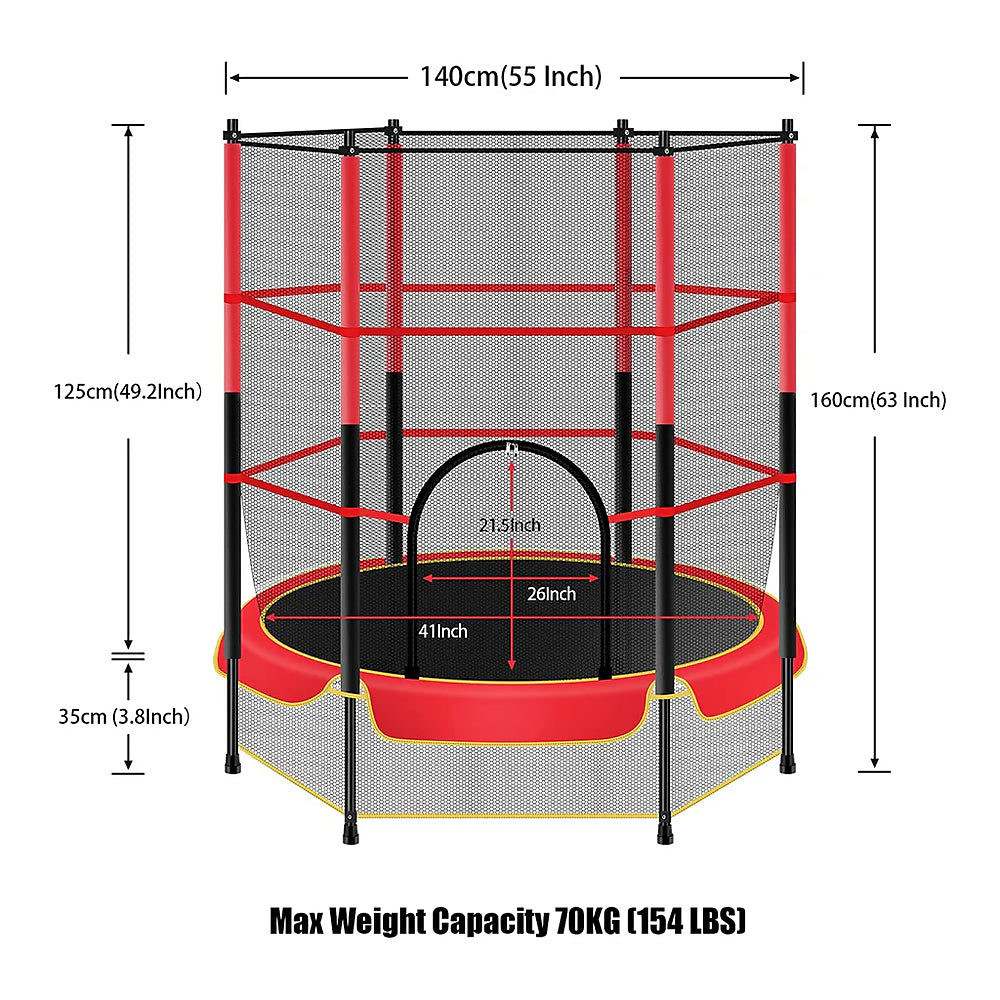 • Tamaño del Trampolín: 54 pulgadas (Diámetro de la lona de salto: 138 cm).