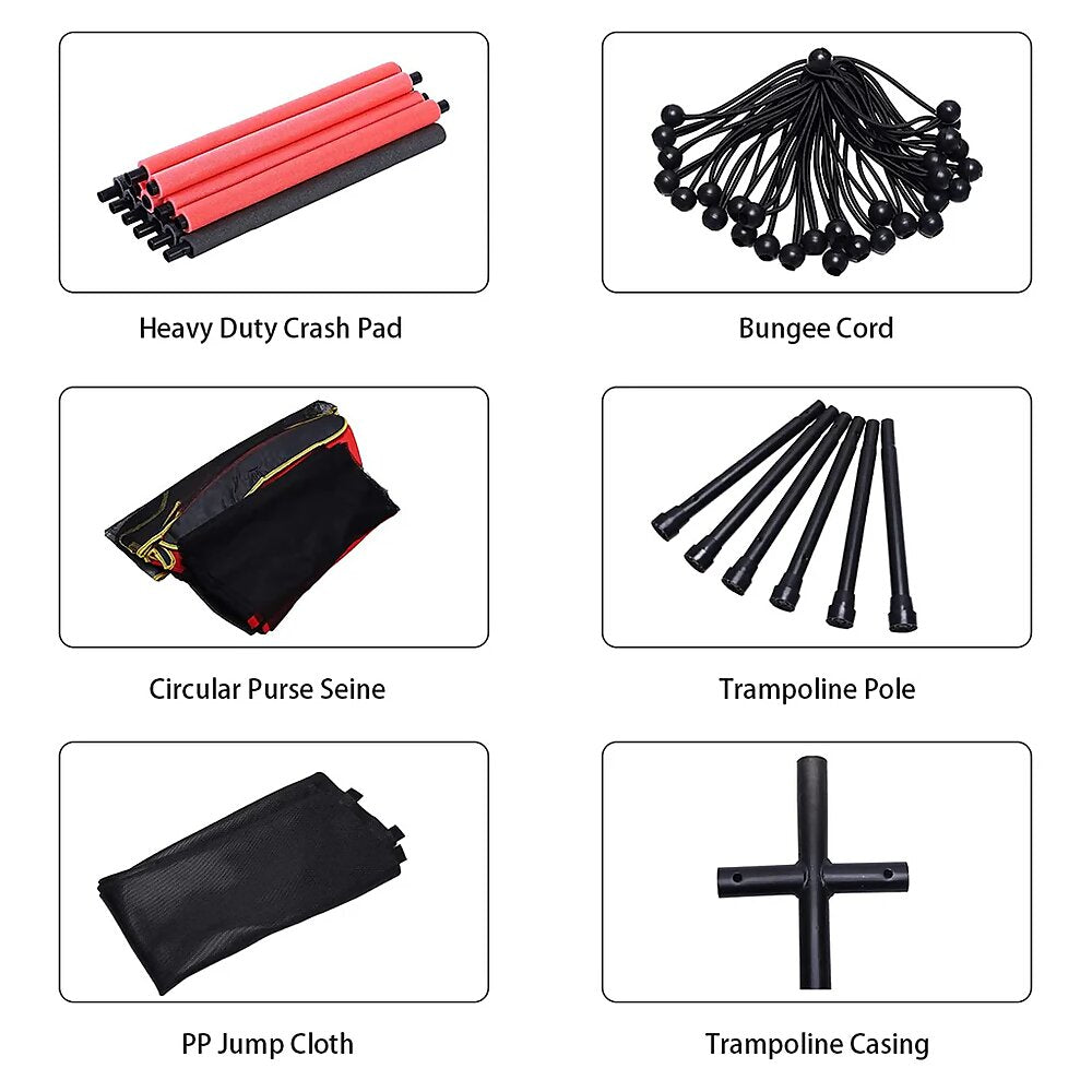 • Estabilidad Superior: Con un marco soportado por seis patas, este trampolín garantiza la estabilidad en cada uso, permitiendo que los niños salten con seguridad. Su estructura de acero aleado asegura una experiencia de juego firme y estable.
