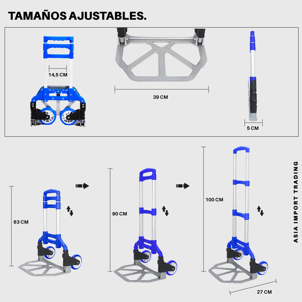 Este Carro de Carga Plegable tipo Yegua hecho en aluminio es ideal para transportar y/o maniobrar de forma segura cajas, equipajes o elementos de mayor volumen o pesados.