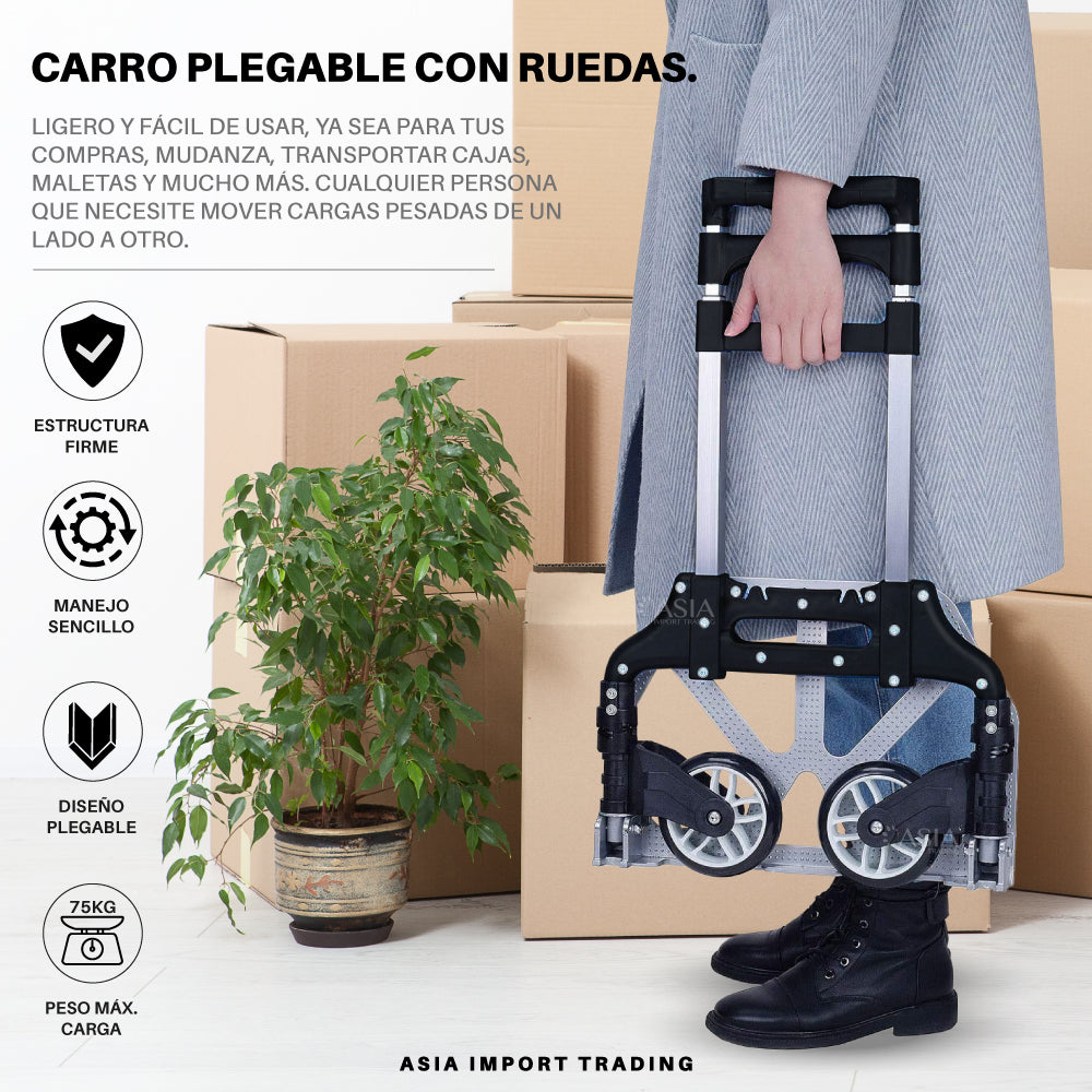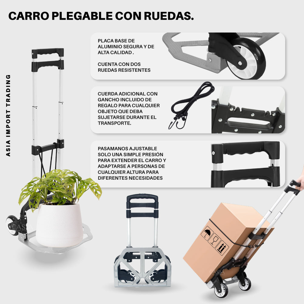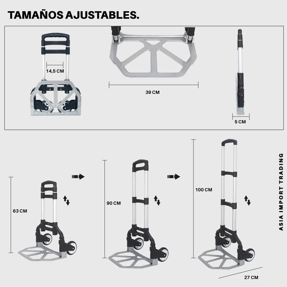 Este Carro de Carga Plegable tipo Yegua hecho en aluminio es ideal para transportar y/o maniobrar de forma segura cajas, equipajes o elementos de mayor volumen o pesados.