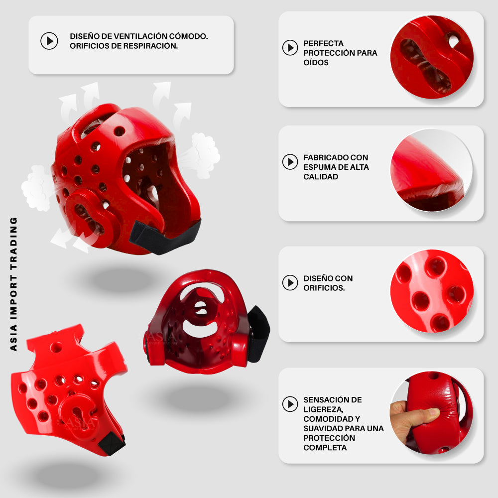 Protector de cabeza ajustable, permite tener una visión clara y sin obstrucciones, esto asegura que puedas ver claramente los movimientos de tu oponente además de proteger tu cabeza obviamente