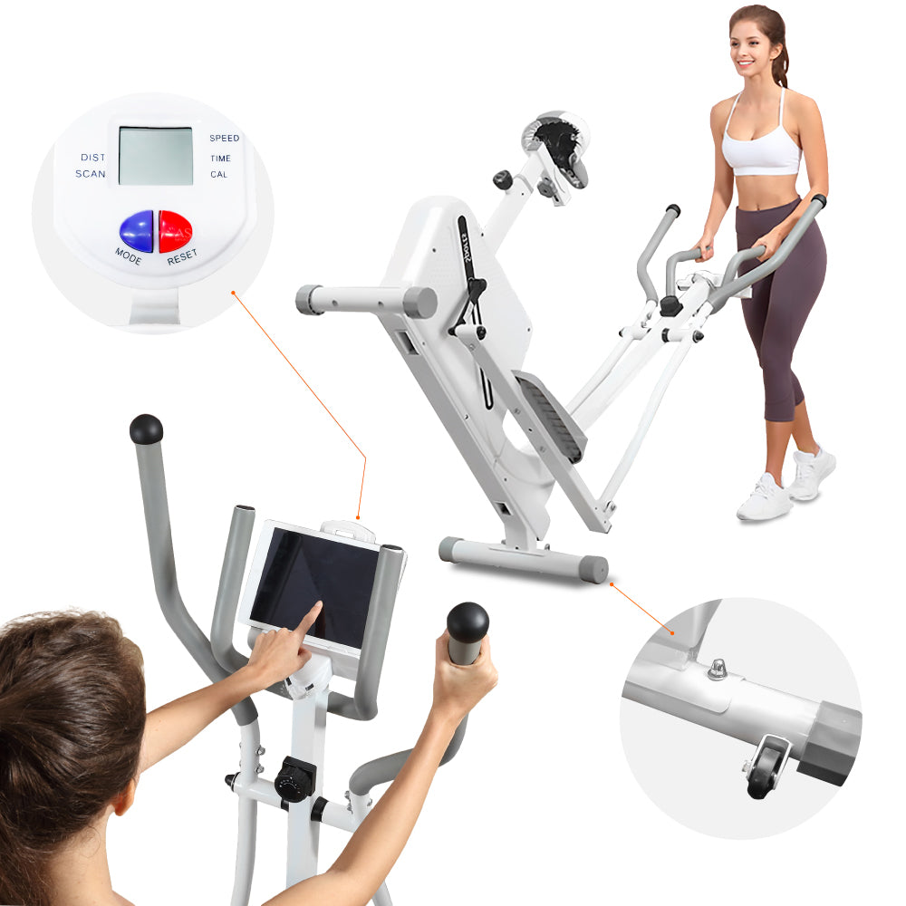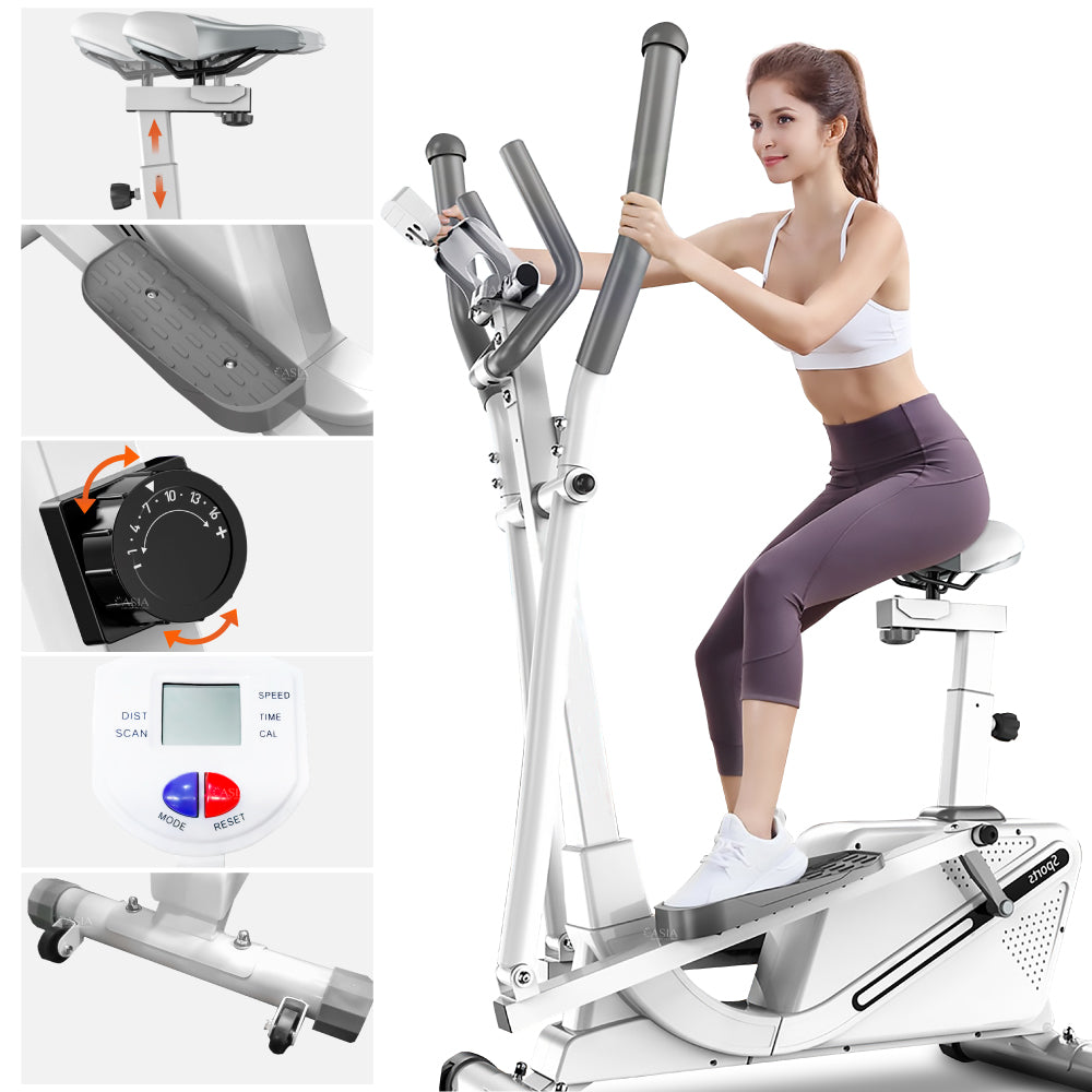 Tiene un marco de acero integrado de alta resistencia para lograr un rendimiento seguro y estable. El manillar antideslizante y las almohadillas para los pies ayudan a mantener una capacidad de movimiento continuo sin interrupción, lo que brinda un entrenamiento de cuerpo entero, ejercitando los músculos tanto de los brazos como de las piernas. Al mantener una postura erguida en la máquina, los músculos abdominales tambien trabajarán, aumentando su estabilidad y resistencia.