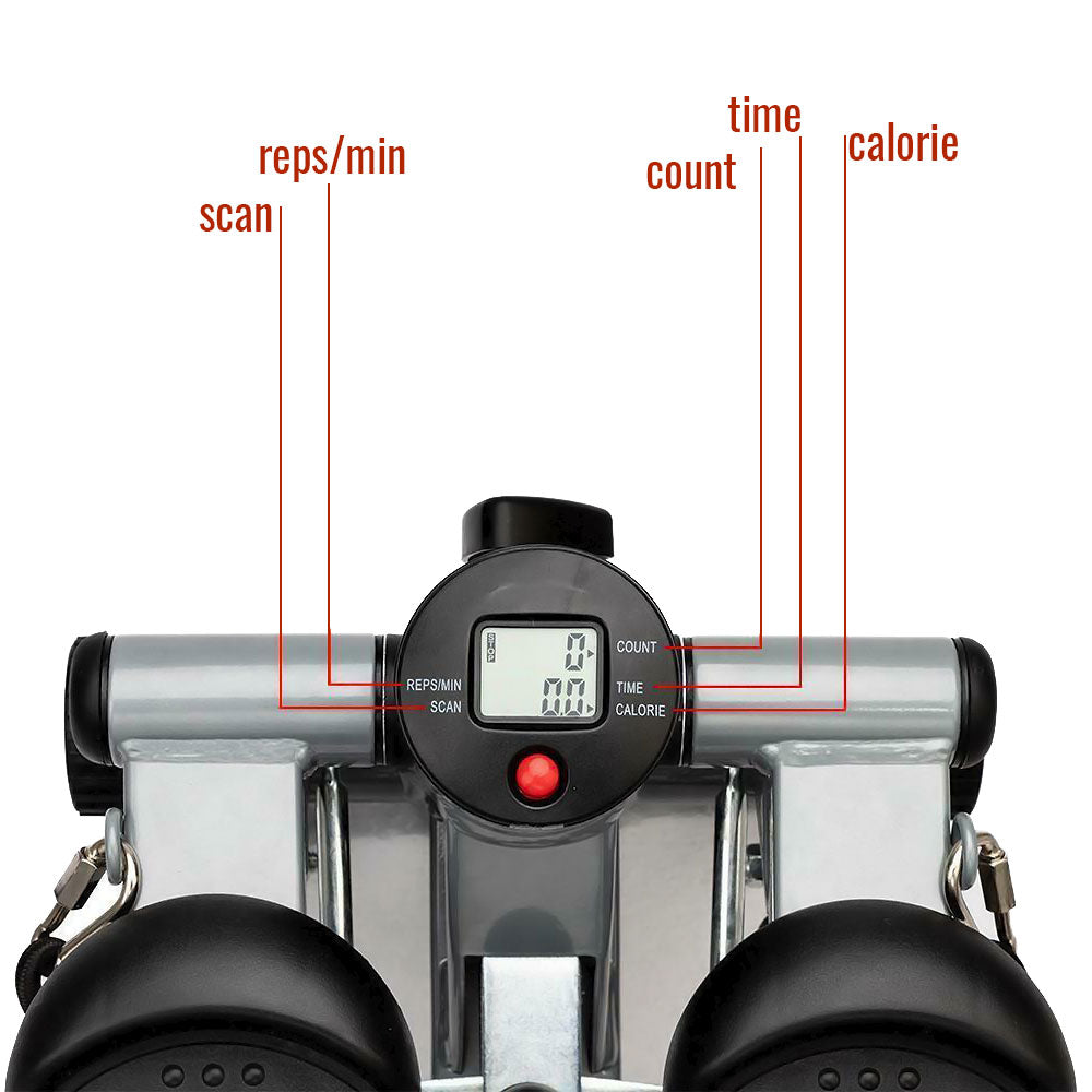 La pantalla LCD integrada monitoriza pasos, tiempo, total y calorías para que puedas seguir tu progreso fácilmente.