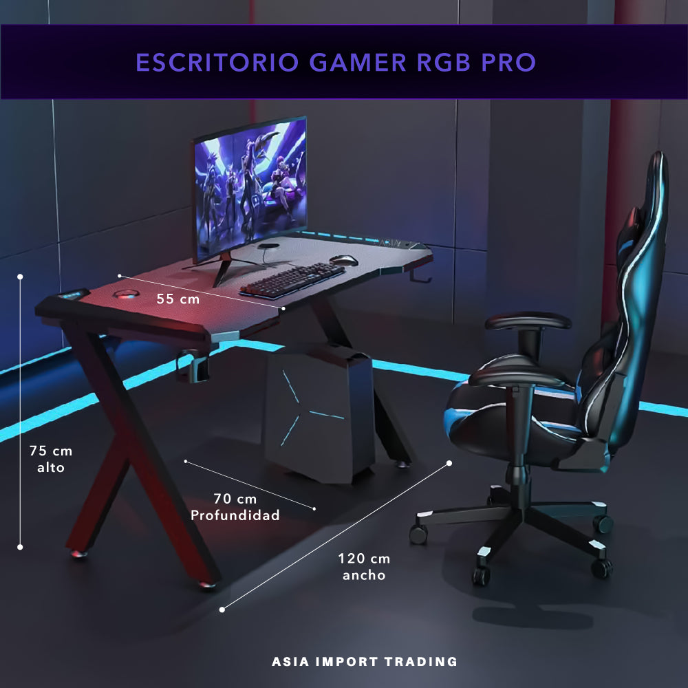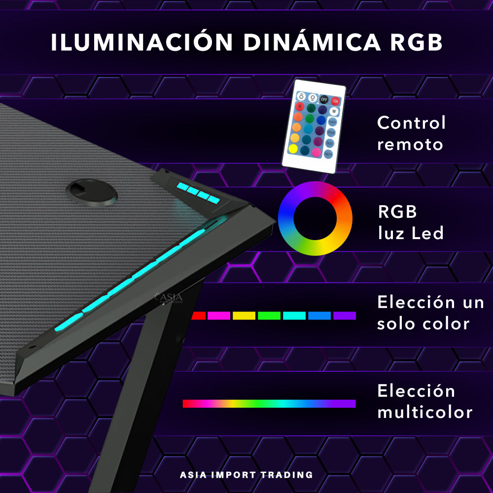Escritorio Gamer con Luz Led RGB para Pc Streamer 120cm X 60cm (Negro)
