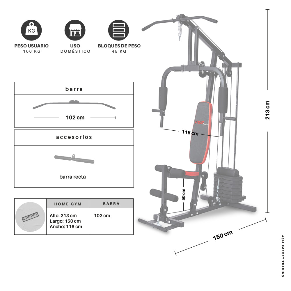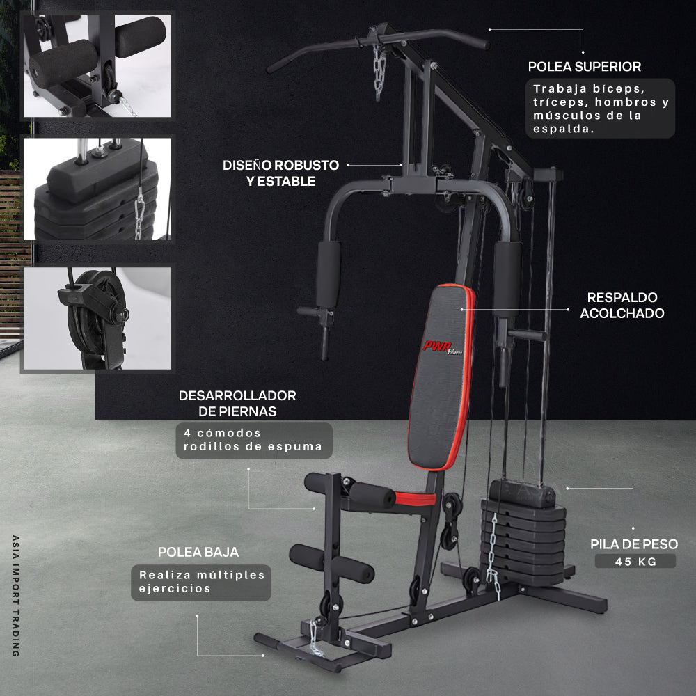Transforma tu rutina de ejercicios con el Home Gym Multifunción, diseñado para llevar el entrenamiento de fuerza a tu hogar. Este equipo multifuncional te permite trabajar brazos, piernas, cintura y abdominales, ofreciendo un entrenamiento de cuerpo completo en un solo aparato. Ideal para aquellos que buscan una solución integral para mantenerse en forma sin necesidad de un gimnasio.