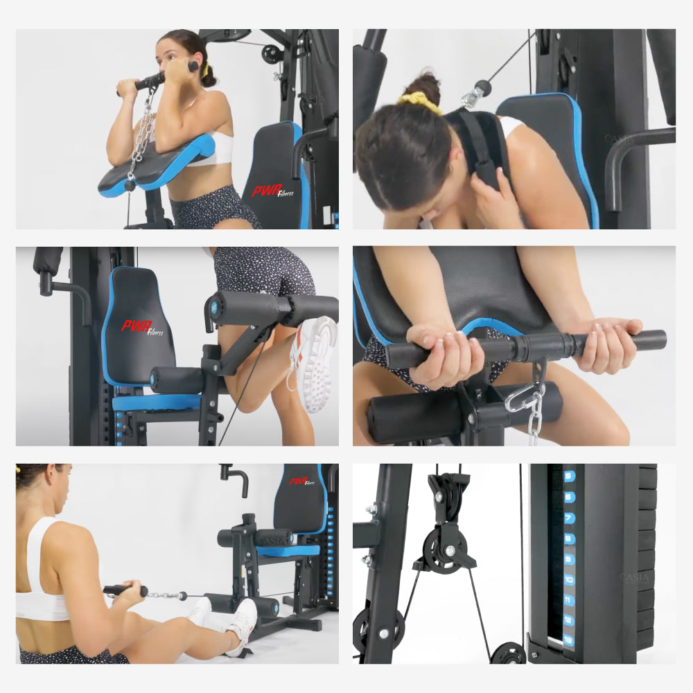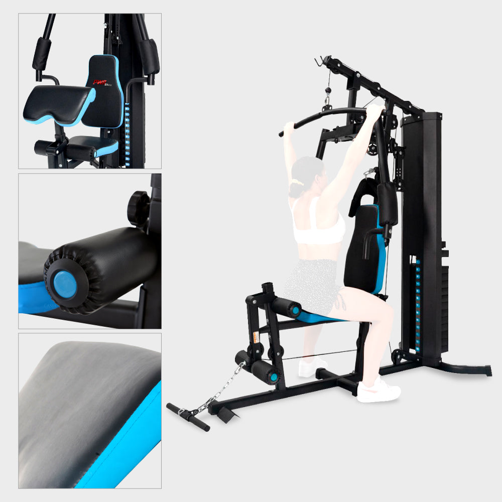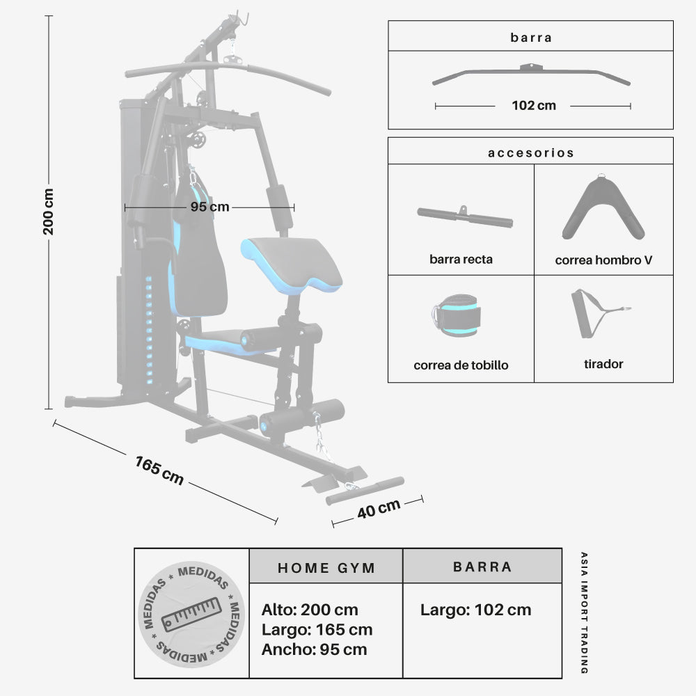 Este Home Gym multifuncional puede entrenar de forma intensiva todos los grupos musculares deseados, lo que te permitirá ejercitarte de manera completa sin salir de casa.
