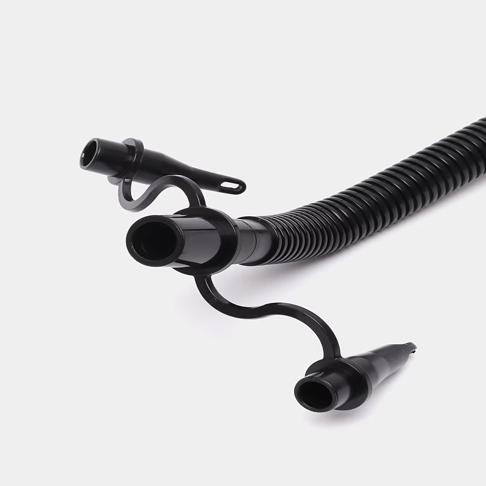 La manguera es de estilo acordeón (105 cm), tiene 3 tamaños de boquillas diferentes que encajan con la mayoría de las válvulas.