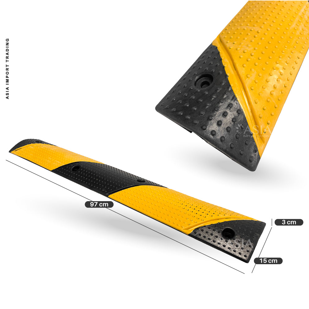 Lomo de toro fabricado con caucho de alta resistencia, ideal para reducción de velocidad en calles o lugares con paso de vehículos.