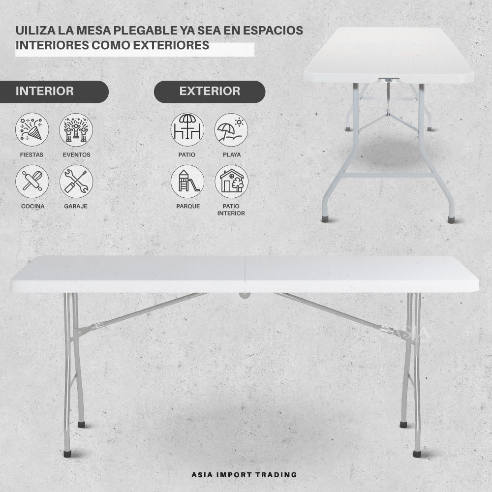 Mesa Plegable Blanca 180cm tipo Maleta Home&Design