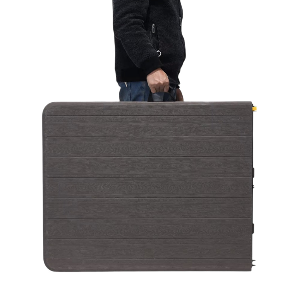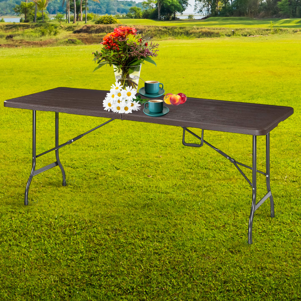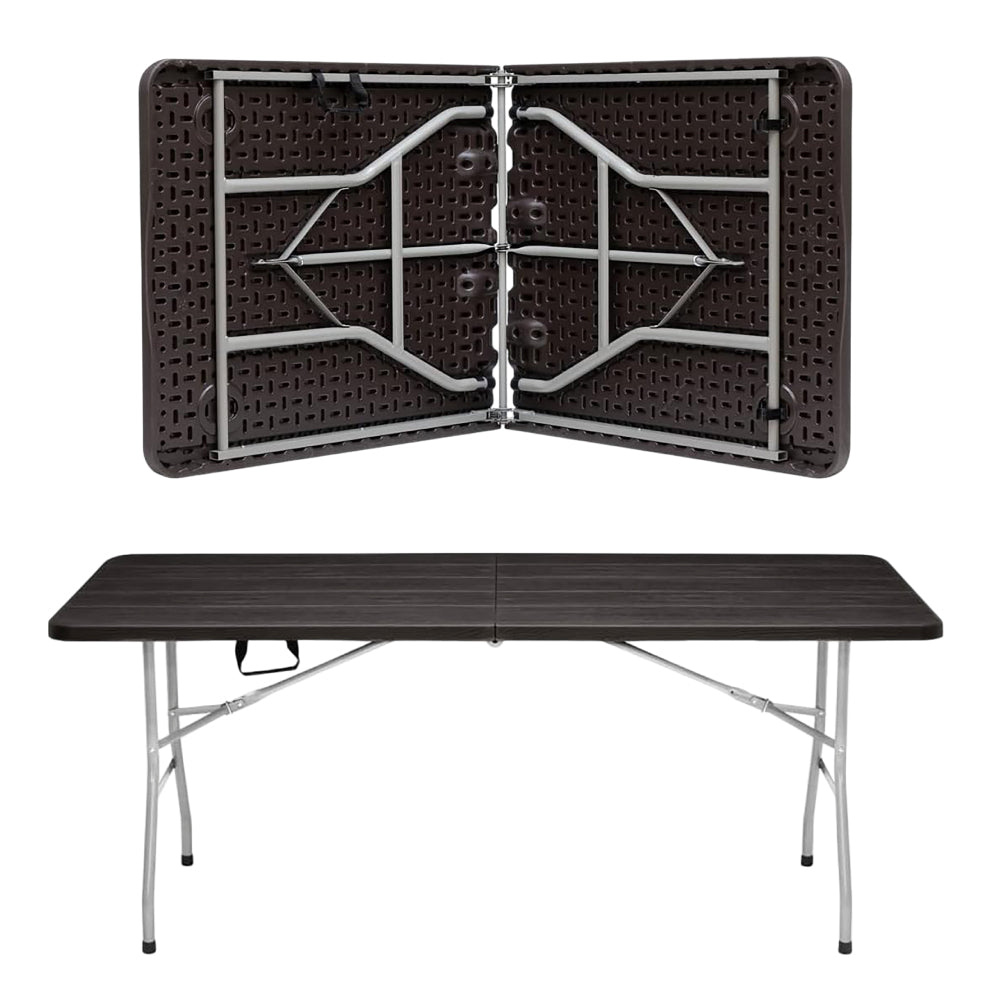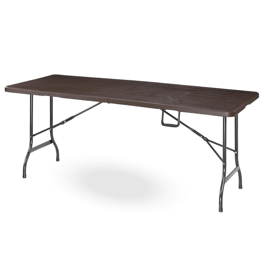 Mesa Plegable Color Café Oscuro Textura Imitación Madera 1.80mt, para Jardin o Interiores