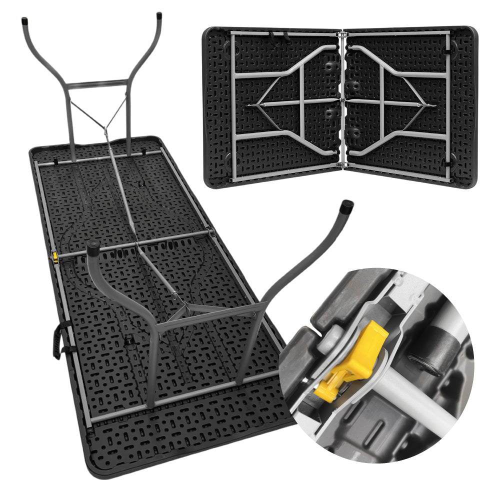 Compacta y de fácil manejo. El sistema plegable facilita el armado y guardado de la mesa, solo necesita doblar y asegurar los candados de seguridad.