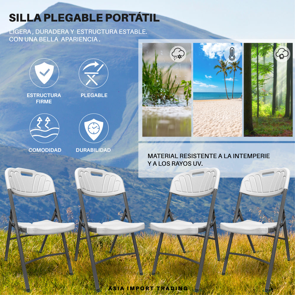 Esta pack de 4 Sillas Plegables en color blanco son la perfecta alternativa para tu terraza, jardín o eventos al aire libre. Su diseño plegable la hace ser muy practica al momento de almacenar o guardar.