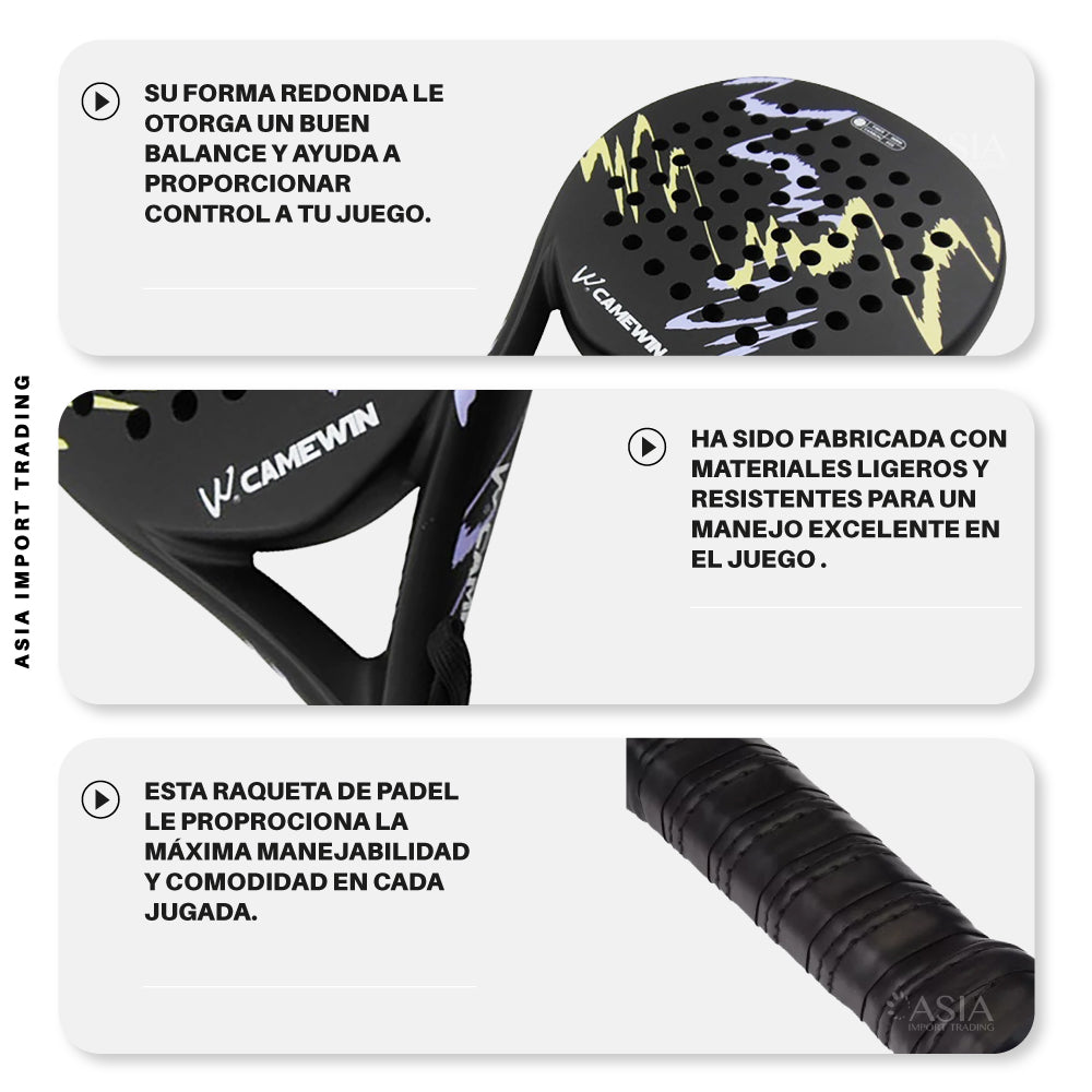 Pala de Padel 4018 Negra con Lila Incluye Estuche