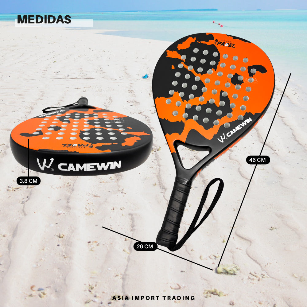 Con la Camewin 4003 obtendrás una pala 100% carbono con un peso ligero, ideal si buscas una pala liviana con excelente control y muy buena potencia, su cabeza redonda te permitirá controlar la pelota y el golpe en el lugar deseado