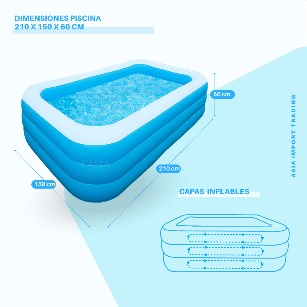 Piscina de tamaño rectangular con medidas 210 x 150 x 60 cm