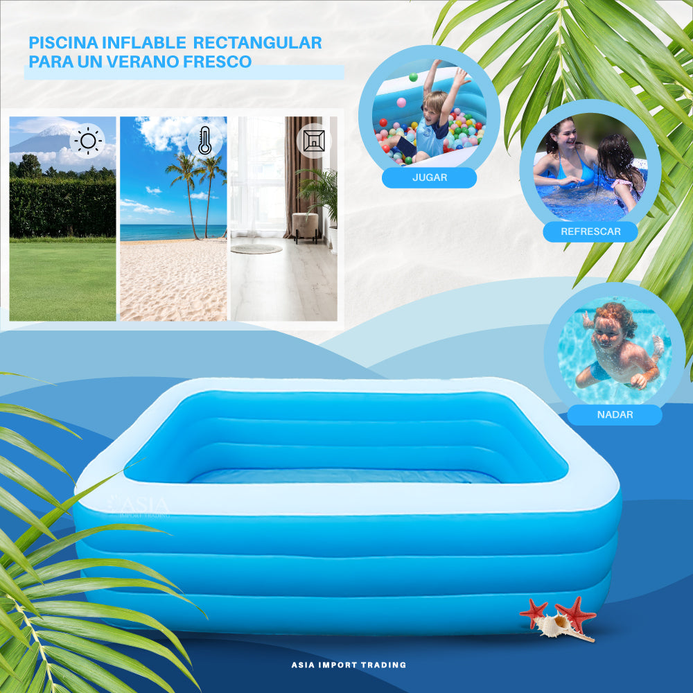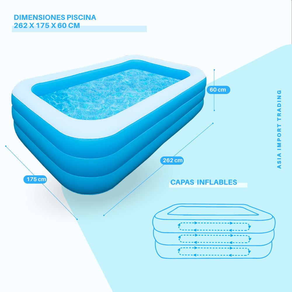 Esta excelente piscina inflable es ideal para esos días calurosos donde los niños y toda la familia pueden disfrutan al máximo, muy práctica, y de fácil guardado, con sus cámaras de aire independiente brinda un armado firme y duradero
