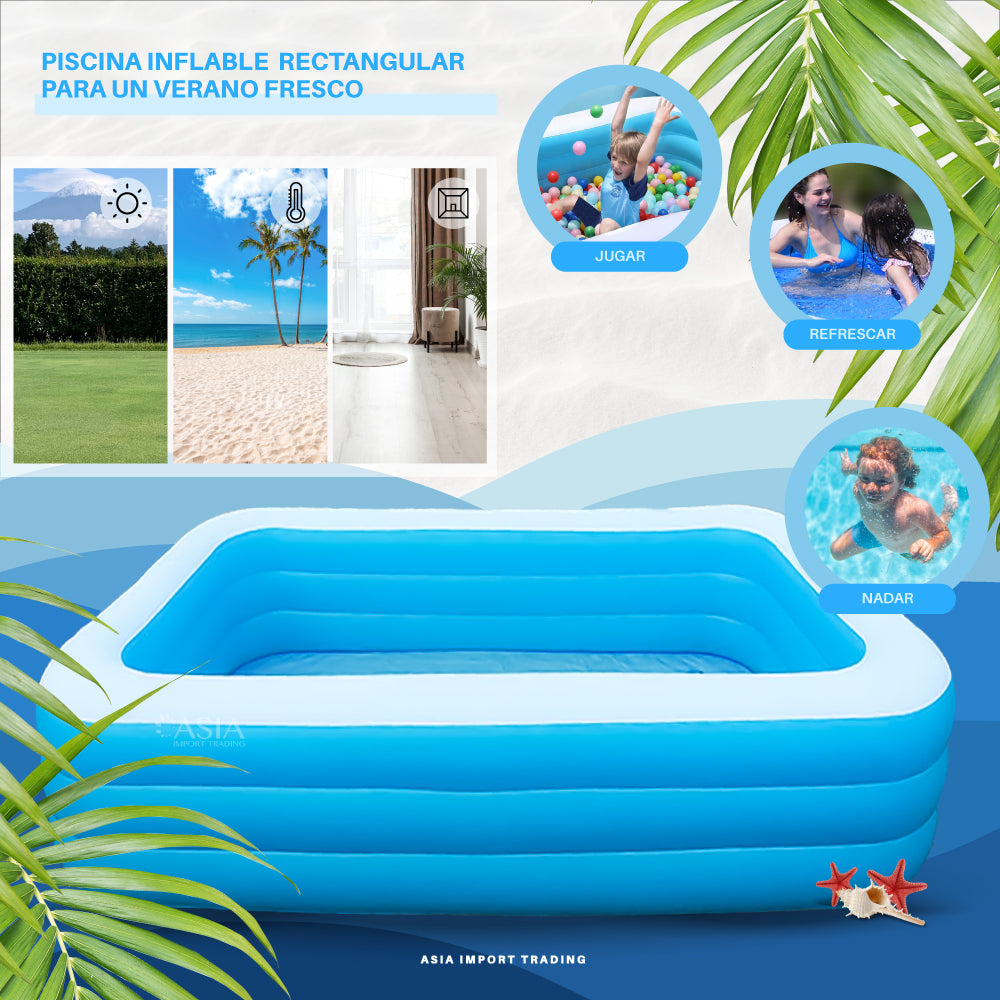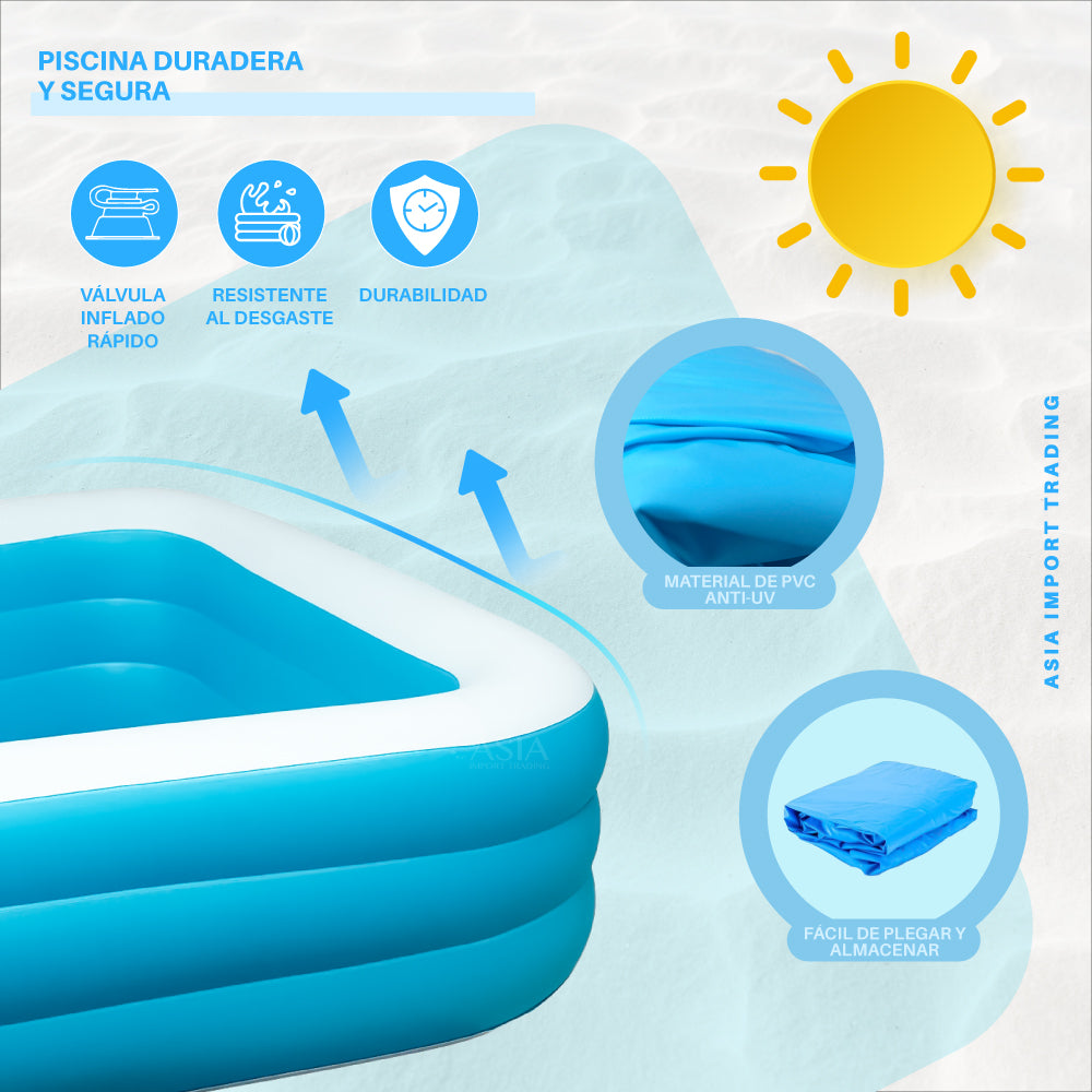 Esta excelente piscina inflable es ideal para esos días calurosos donde los niños y toda la familia pueden disfrutan al máximo, muy práctica, y de fácil guardado, con sus cámaras de aire independiente brinda un armado firme y duradero