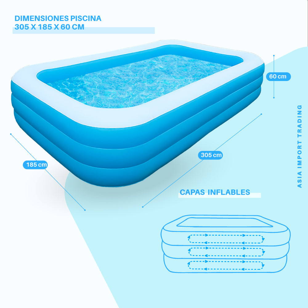 Piscina de forma rectangular con medidas 305 x 185 x 60 cm