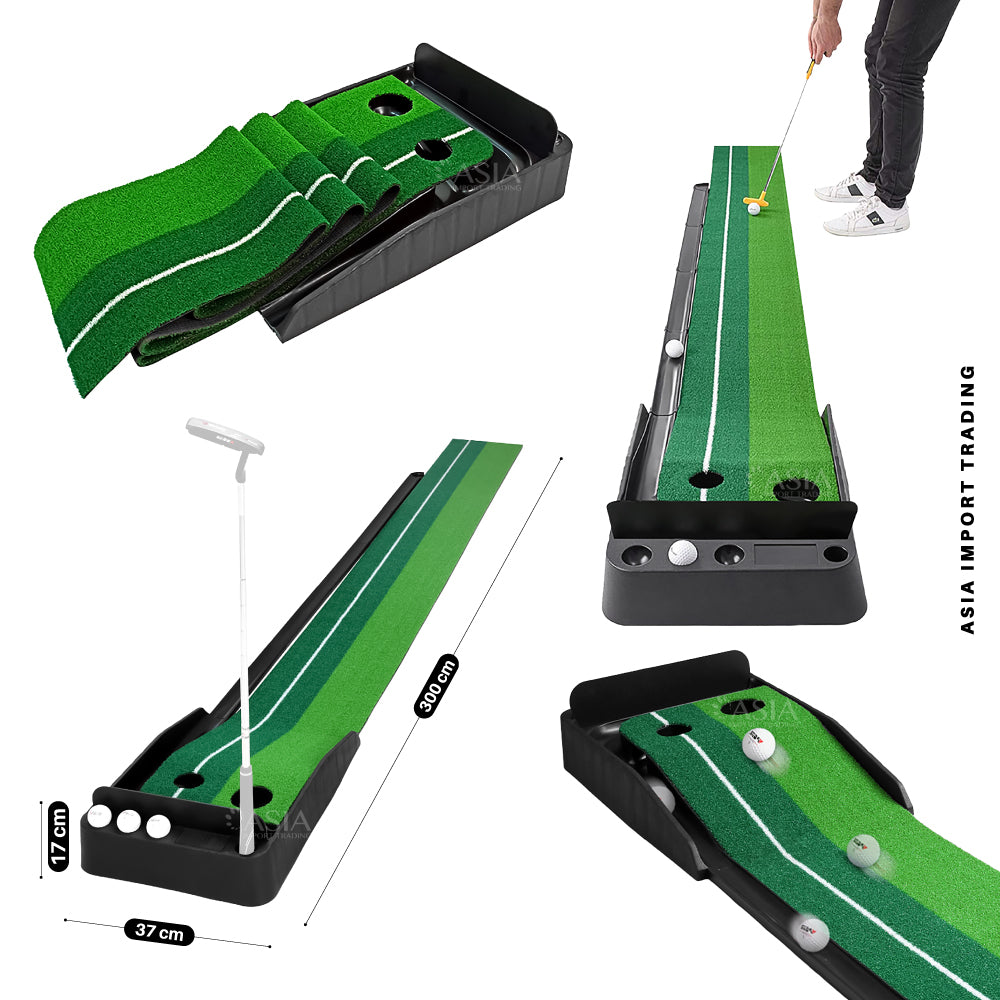 Pista de Golf Portátil Pro Putt 3 m con Retorno Automático