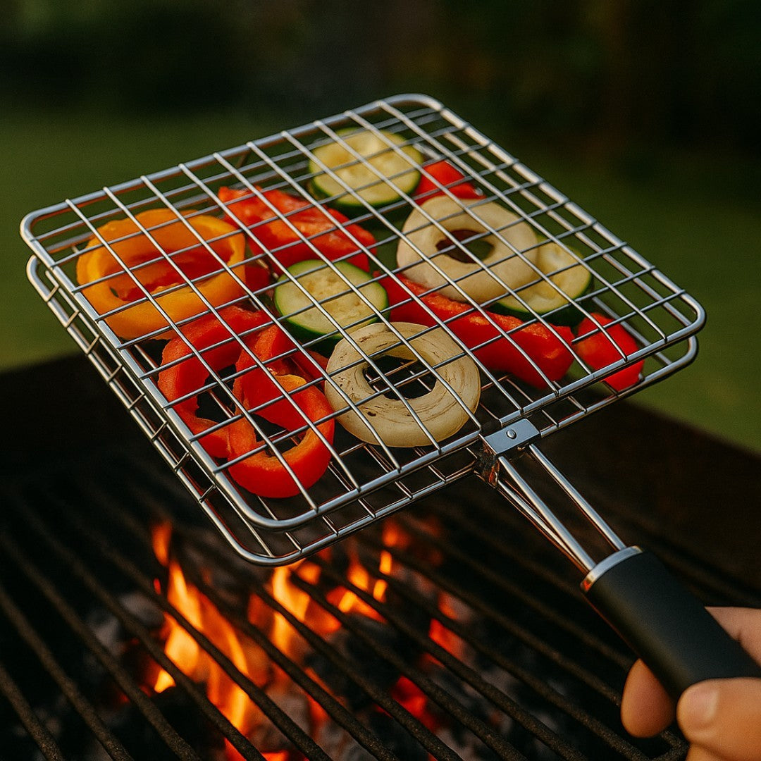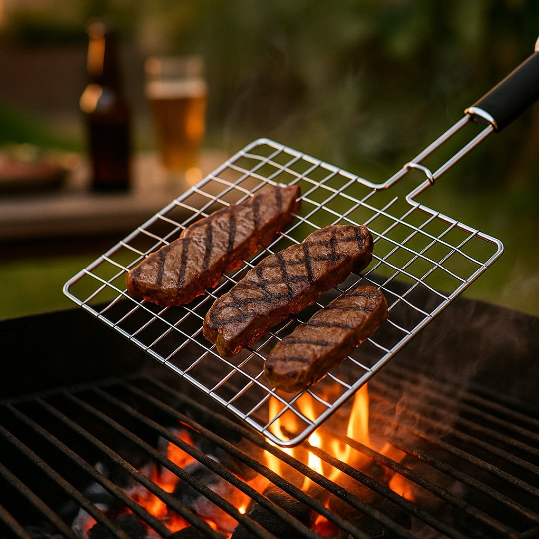 Disfruta asados más fáciles y parejos con la Rejilla Parrillera Flip-Grill Pro. Su malla mantiene los alimentos firmes y elevados, evitando que se peguen o se caigan entre las rejillas de la parrilla. El mango ergonómico con recubrimiento antideslizante permite manipularla con seguridad para girar todo de una sola vez.