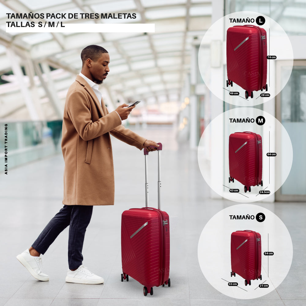 Set de 3 Maletas Rígidas color Rojo