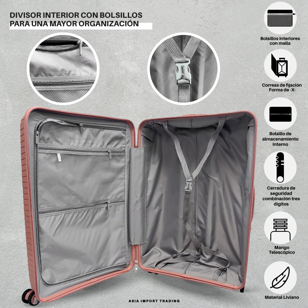 Set de 3 maletas de viaje en diferentes tamaños, Equipajes Ultraligeros hechos en material rígido resistente y con un diseño moderno y elegante.