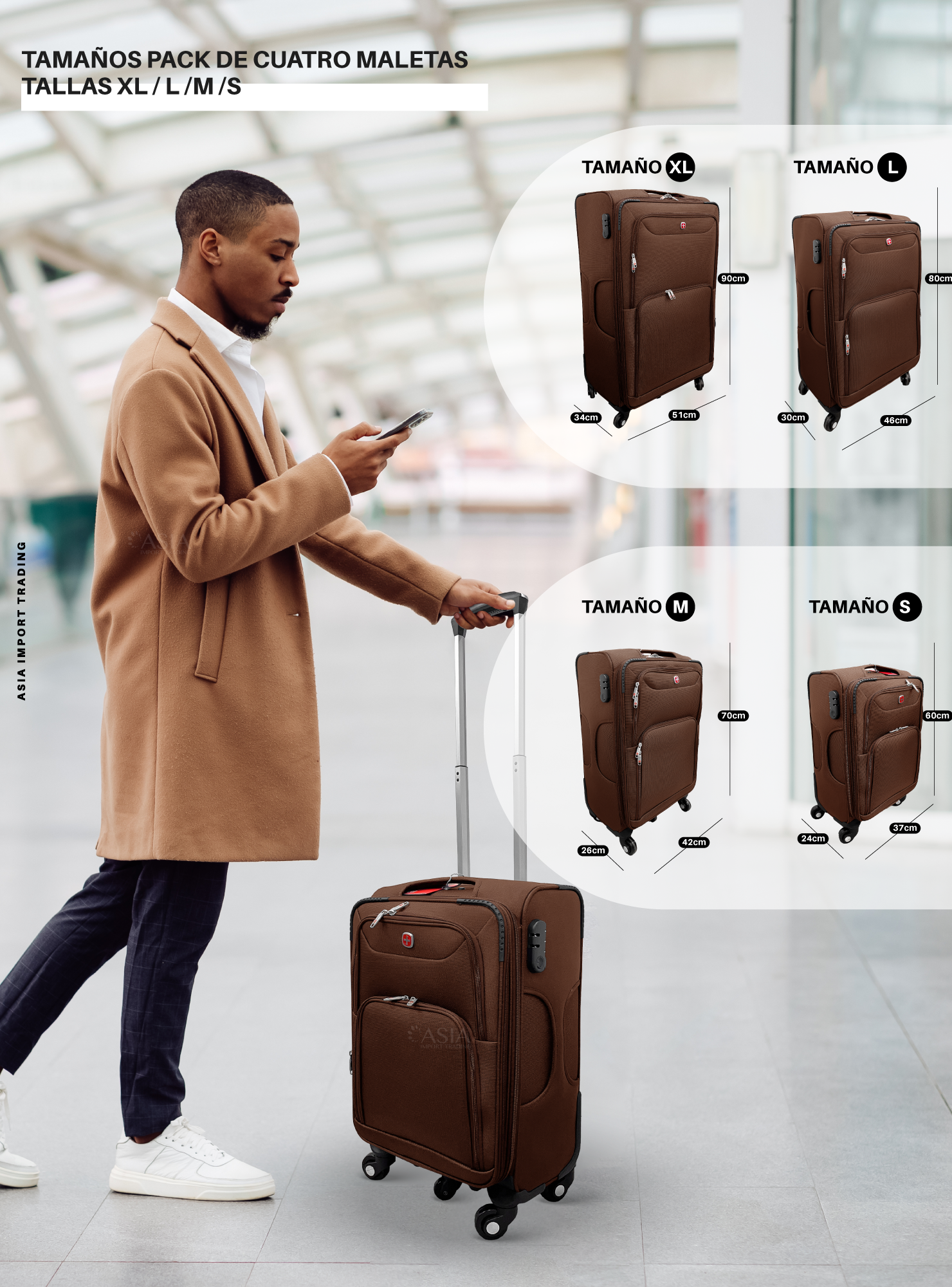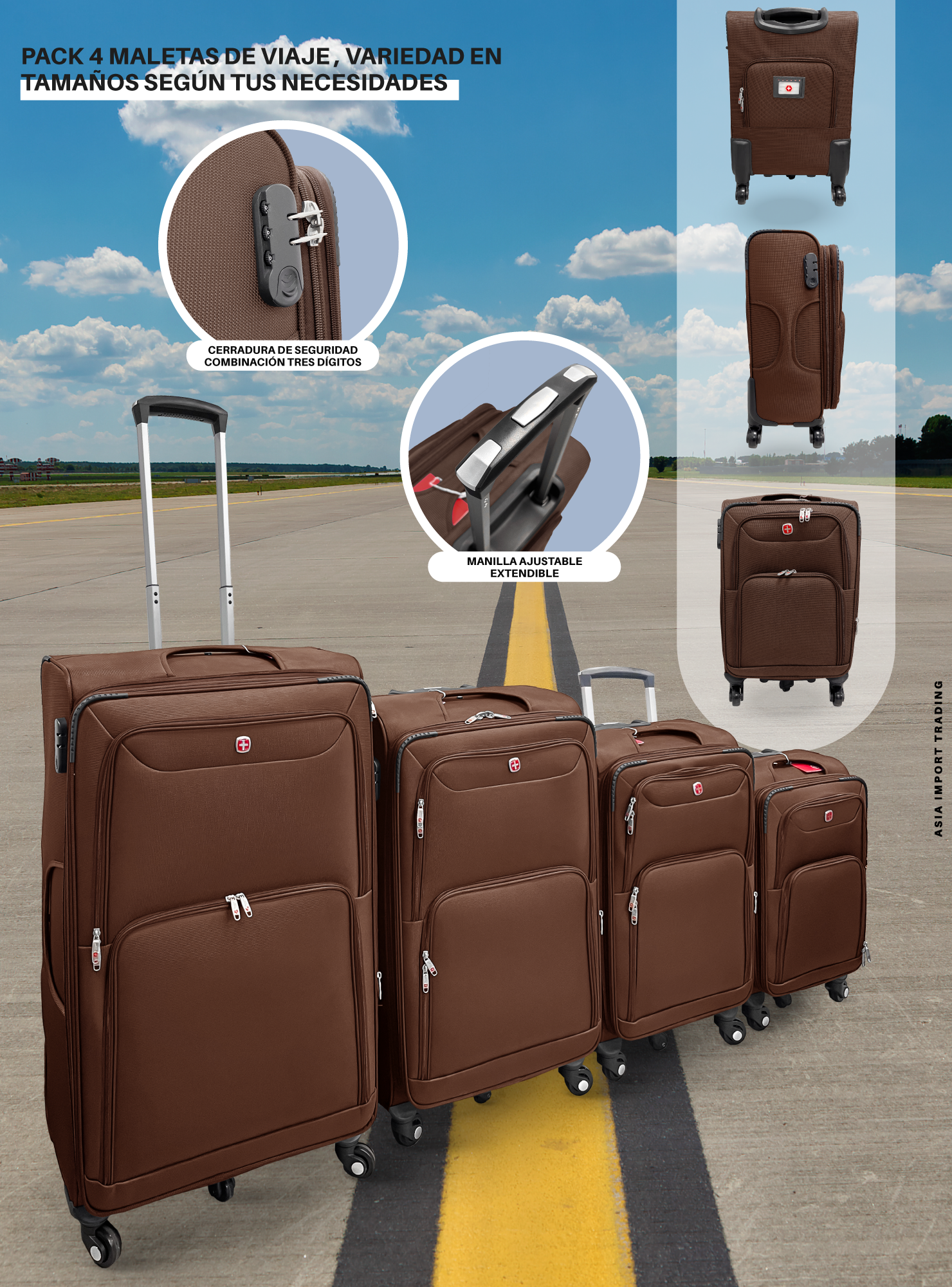 Set de 4 Maletas Blandas color Café