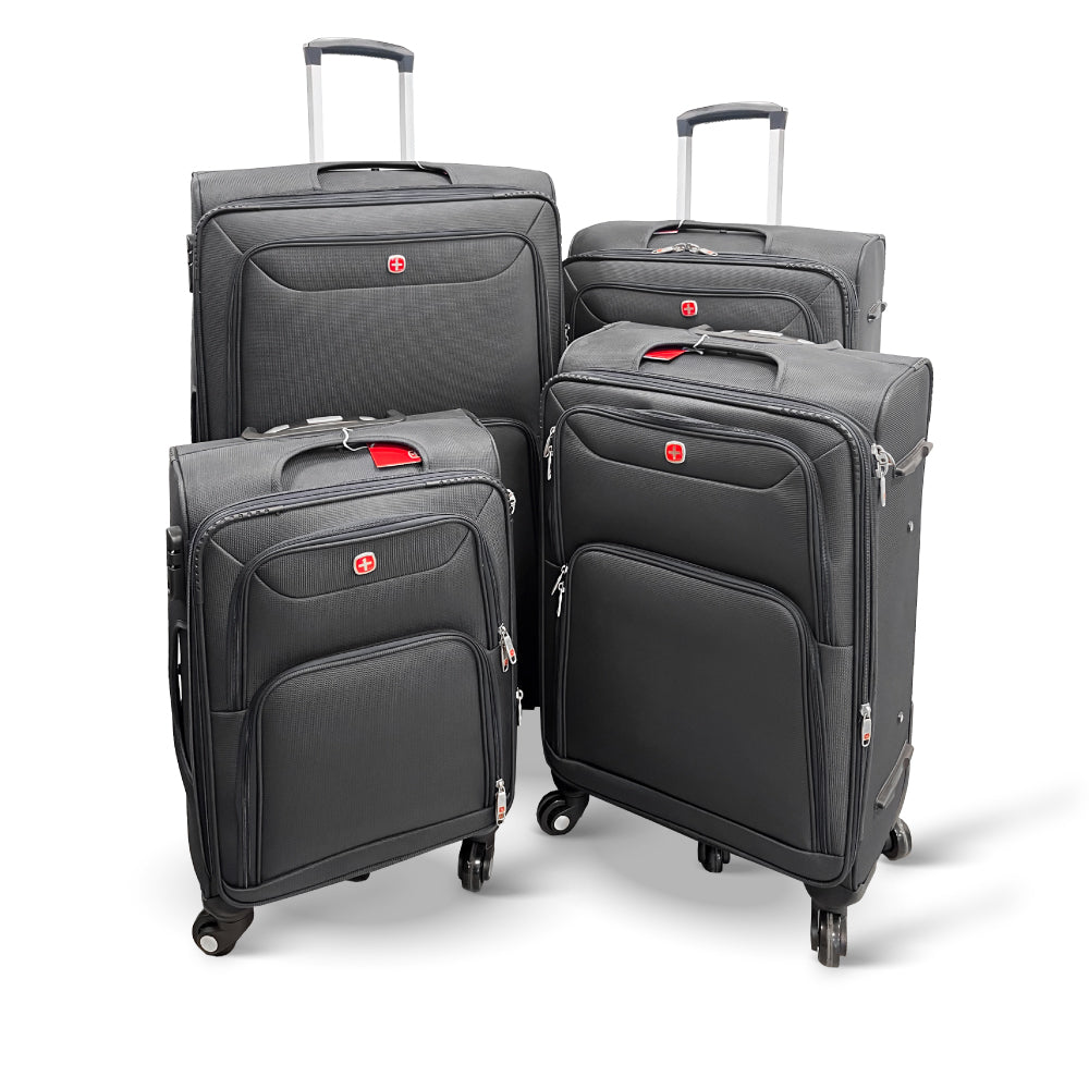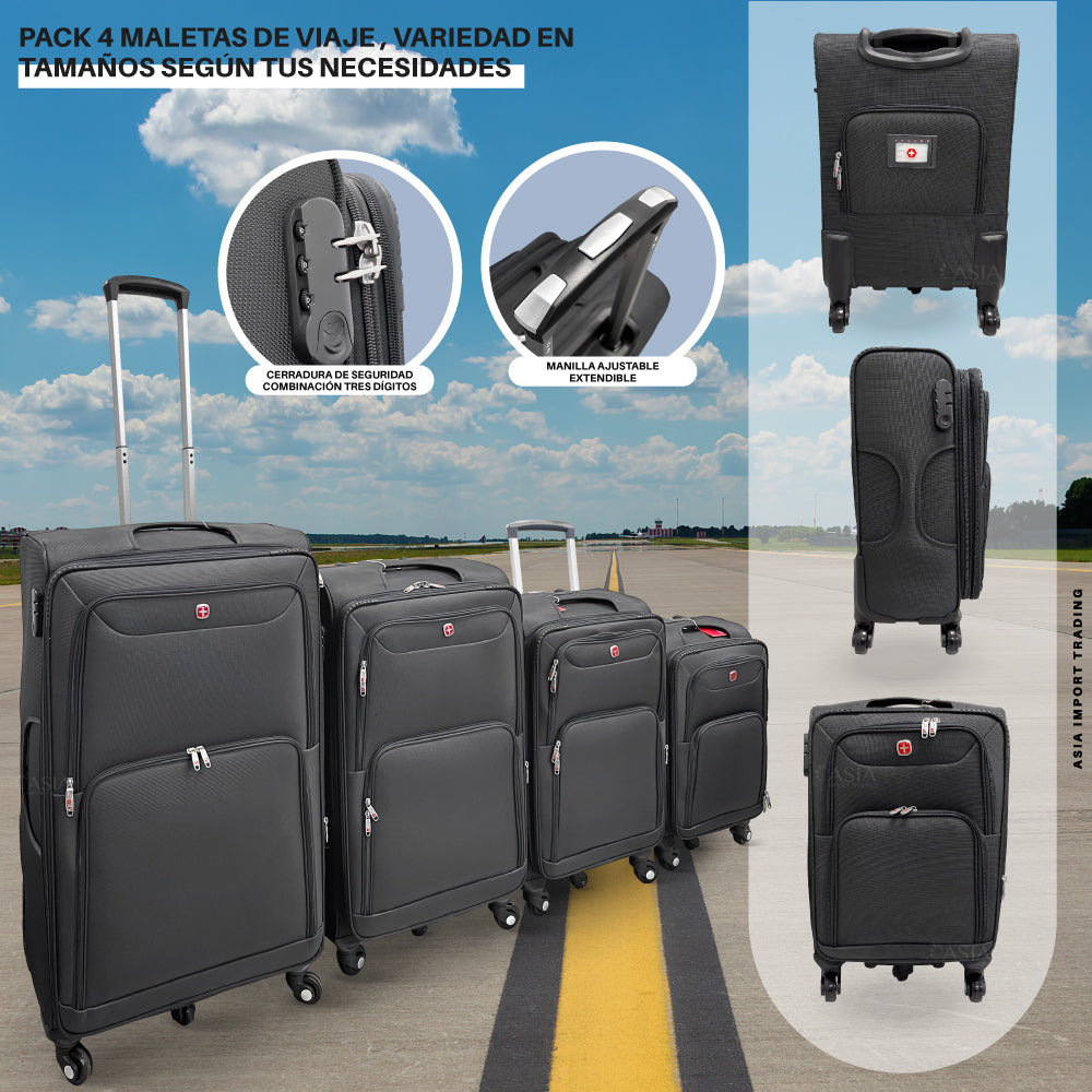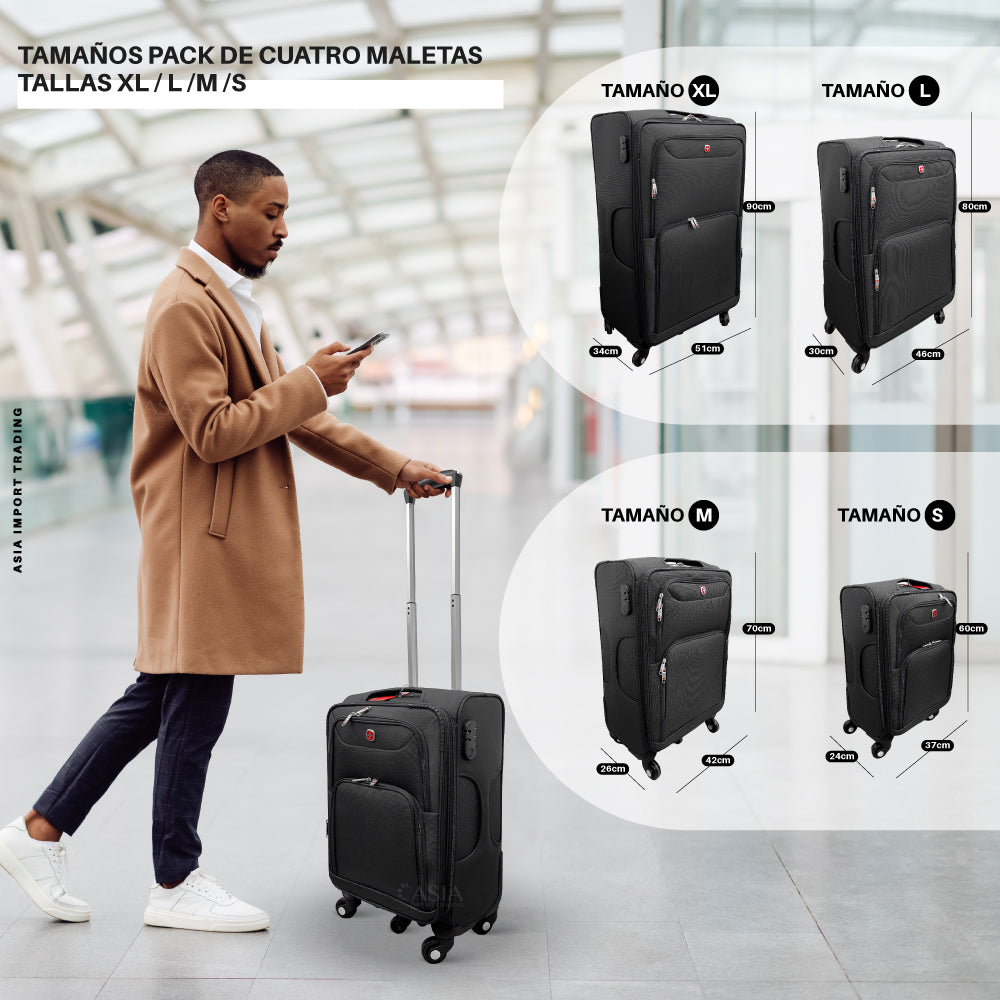 Set de 4 maletas de viaje en diferentes tamaños, hechos en material blando resistente y con un diseño moderno y elegante.
