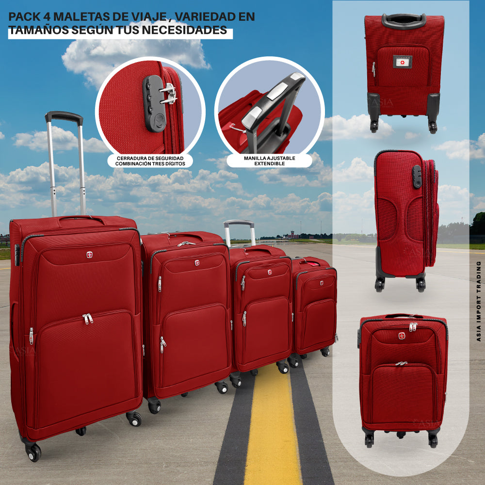 Set de 4 maletas de viaje en diferentes tamaños, hechos en material blando resistente y con un diseño moderno y elegante.