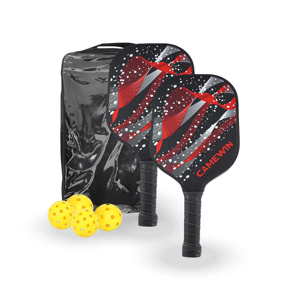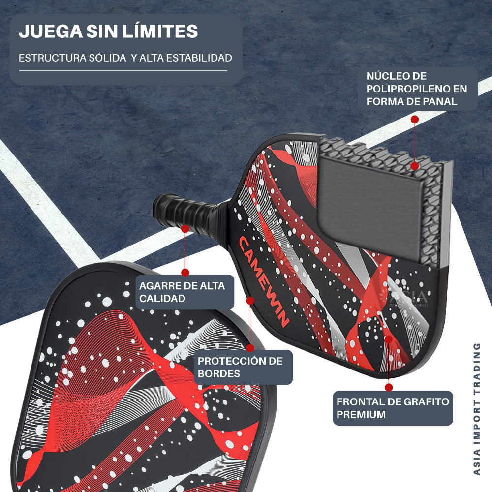Practico set de 2 paletas de Pickleball de fibra de grafito y superficie texturizada, ideal para niveles iniciales a intermedios de este entretenido nuevo deporte.