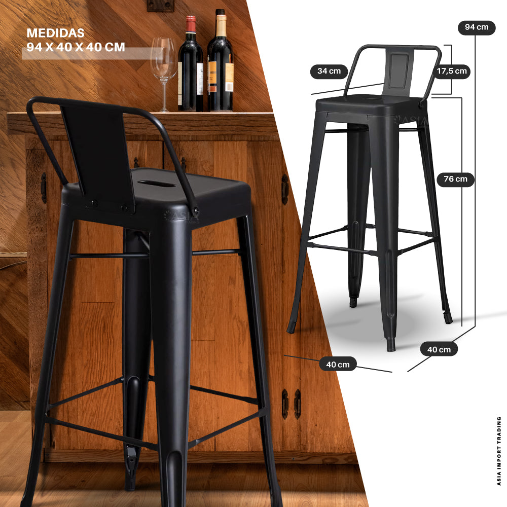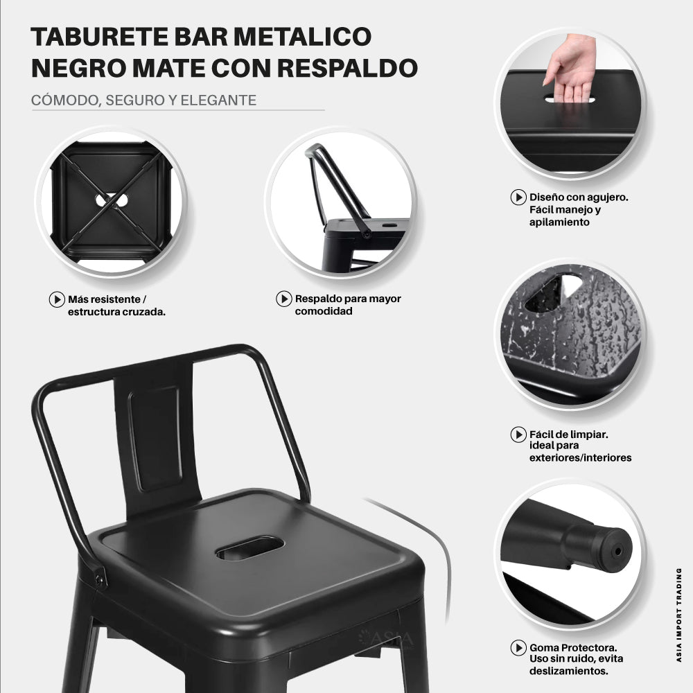 Esta silla de bar con respaldo destaca por su resistencia y durabilidad, su diseño simple y funcional, ofrece versatilidad para distintos espacios, como bares, cocinas , terrazas o áreas de comedor brindando un toque moderno y elegante a cualquier ambiente ya sea en interior o exterior.
