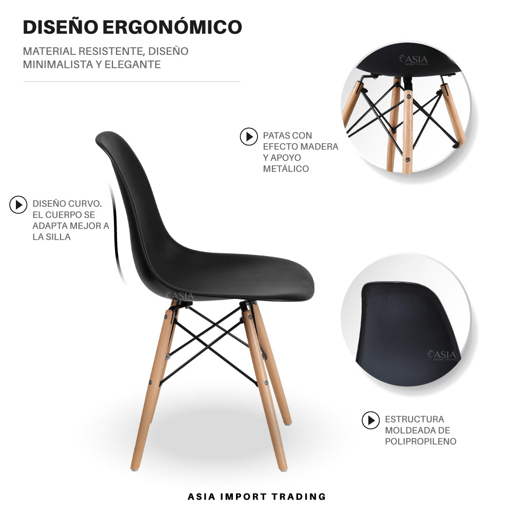 Esta silla de estilo Eames es un producto versátil que dara un toque de simpleza al lugar que ocupe. Es una silla cómoda y ergonómica, lo que la convierte en un elemento muy práctico y ambiental para tu casa, destaca por su versatilidad y diseño, crea un ambiente en el lugar que más te guste. Combina ergonomía, comodidad, elegancia y simplicidad.
