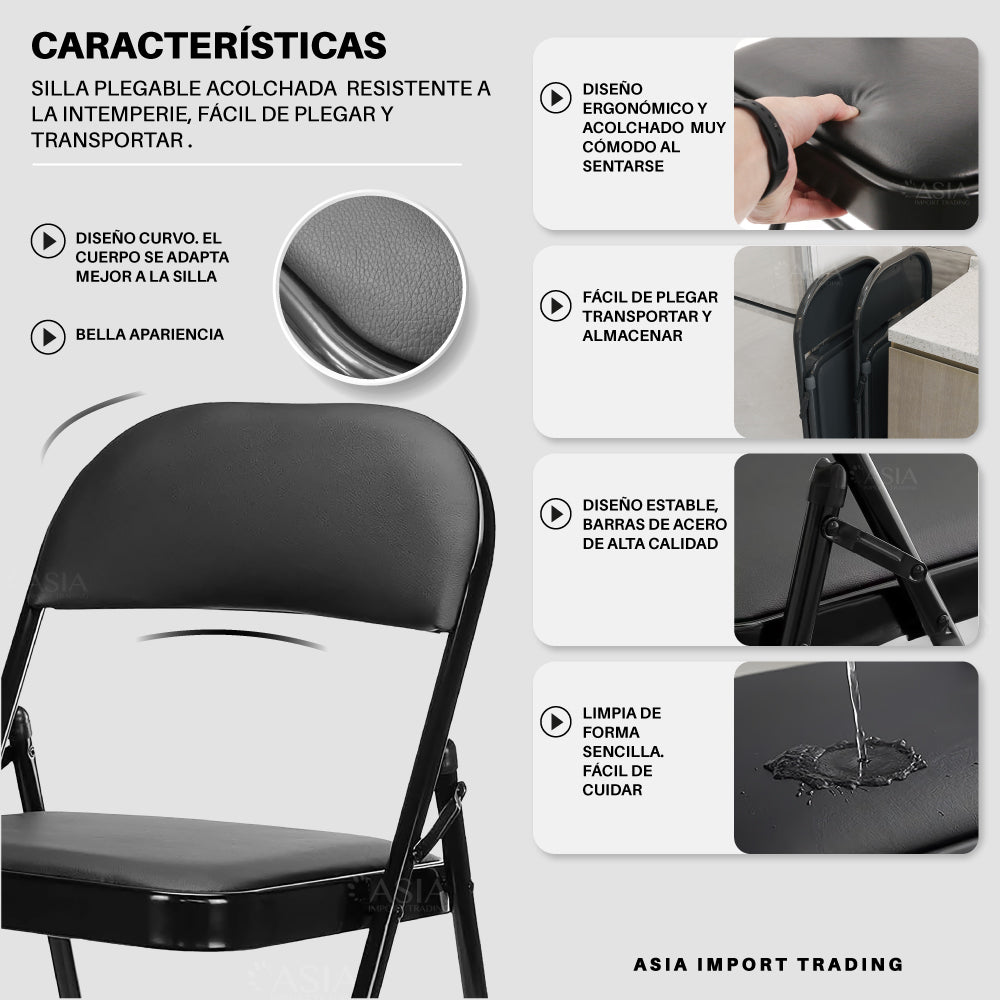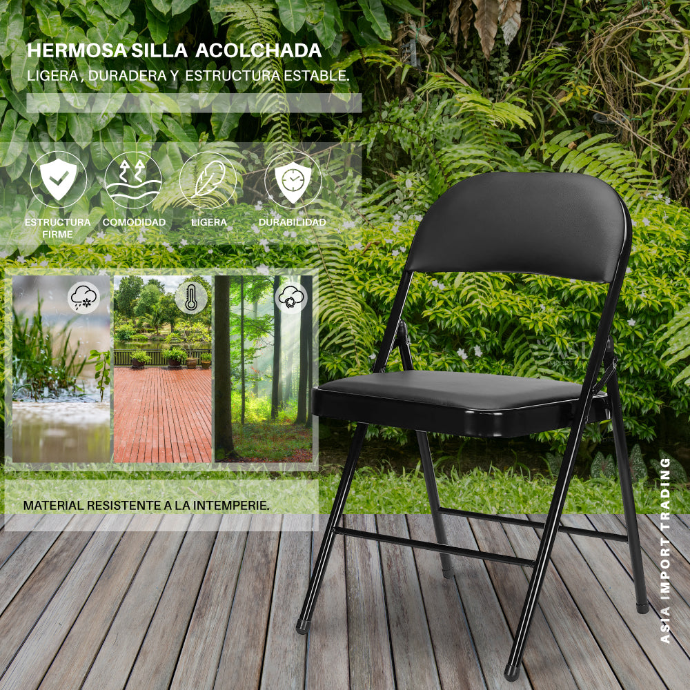 Esta Silla Plegable Negra es una excelente alternativa para eventos o cuando tienes muchos invitados en tu hogar, ya que se puede usar tanto en interior como en exterior.