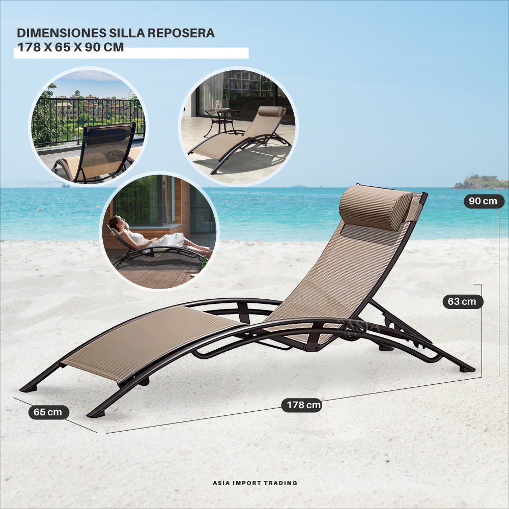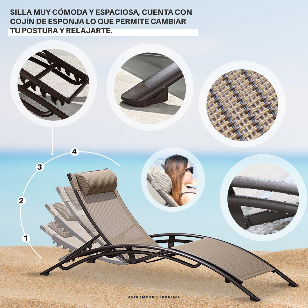Disfruta de tu terraza, piscina o simplemente al aire libre con esta práctica Reposera con respaldo reclinable en 4 posiciones.