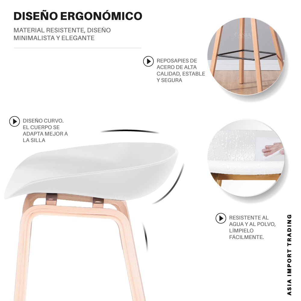 Esta silla o taburete es la opción ideal para aquellos que buscan un asiento cómodo y elegante. Su diseño de estilo nordico en color blanco combina perfectamente con cualquier estilo de decoración, mientras que su altura es perfecta para barras y mesas altas.