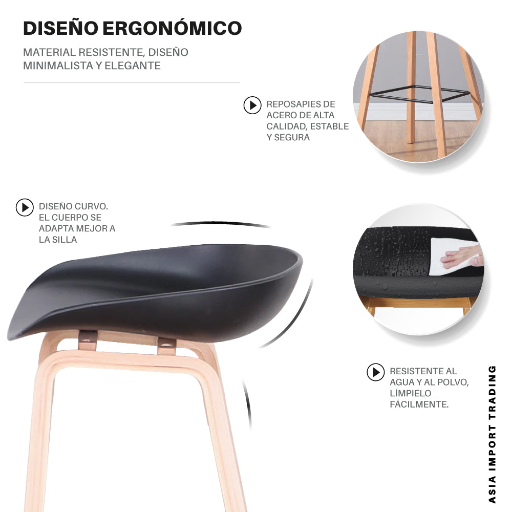 Esta silla o taburete es la opción ideal para aquellos que buscan un asiento cómodo y elegante. Su diseño de estilo nordico en color negro combina perfectamente con cualquier estilo de decoración, mientras que su altura es perfecta para barras y mesas altas.