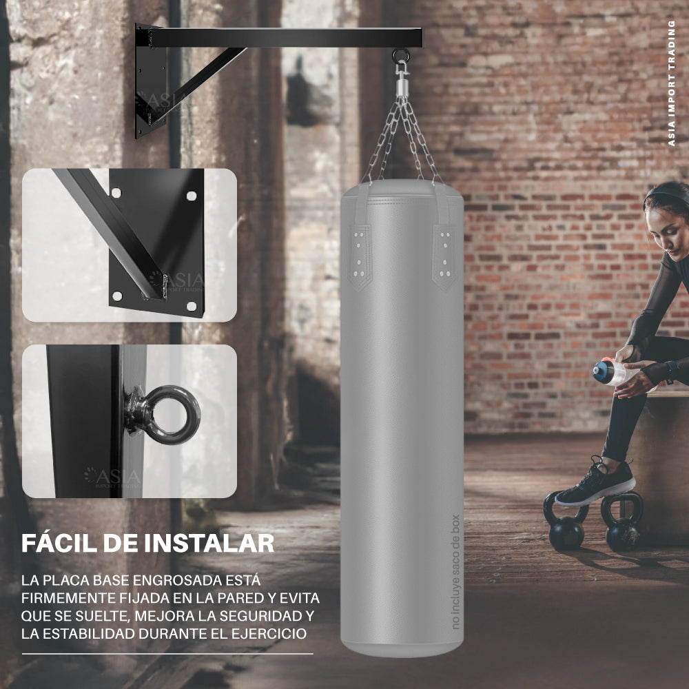 Soporte de saco de Box colgante para montar en la pared, hecho de acero es muy resistente, incluye pernos de anclaje y Mosqueton de metal