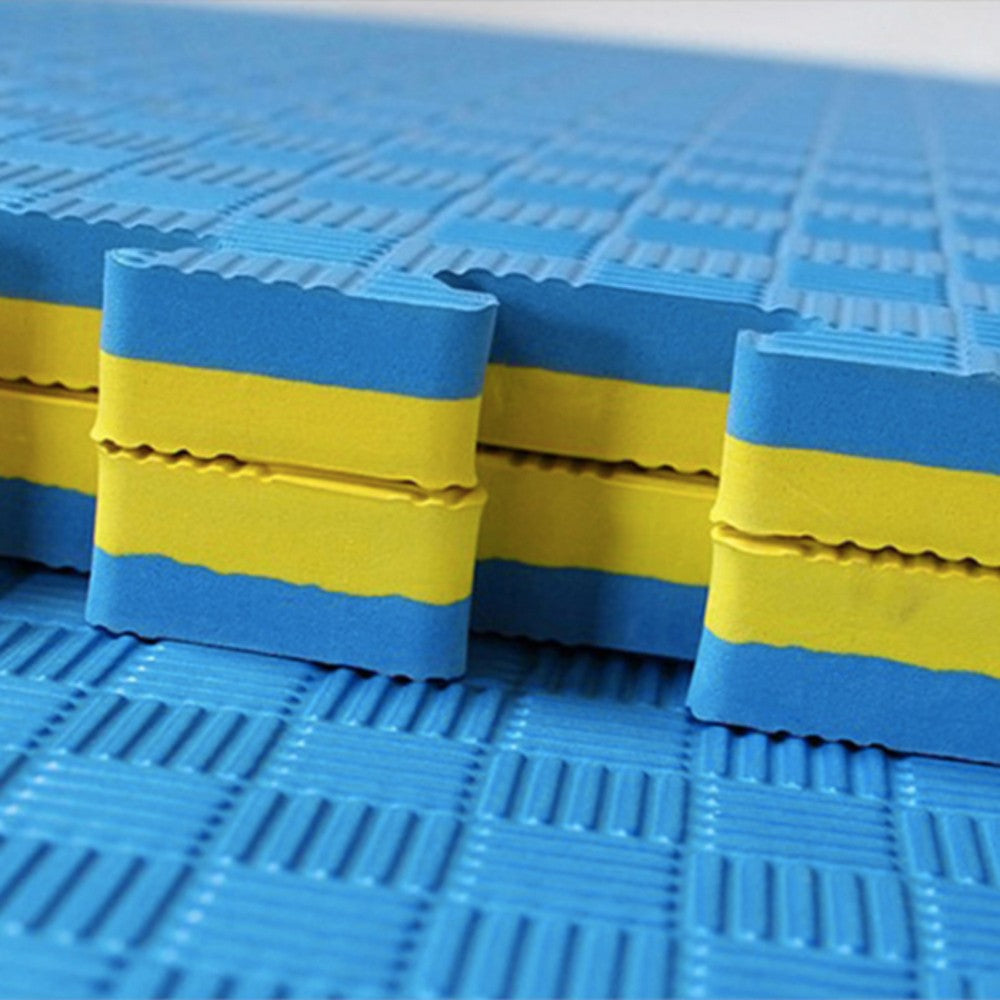 Eleva la protección de tu espacio con este tatami encajable de 40 mm de espesor, ideal para entrenamientos de alto impacto y zonas de juego. Fabricado en espuma EVA de alta densidad, ofrece gran absorción de golpes, reduce el ruido y protege el piso. Es reversible (amarillo/azul), con superficie texturada antideslizante en ambas caras y se instala como rompecabezas sin herramientas.