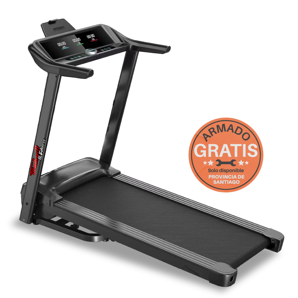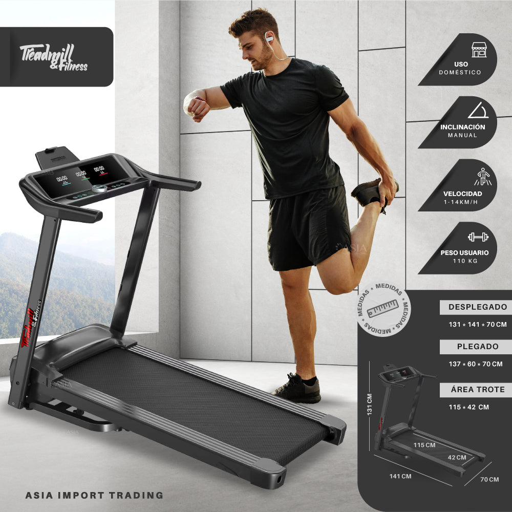 Transforma tu rutina con esta potente trotadora eléctrica plegable diseñada para uso doméstico. Alcanza hasta 14 km/h y elige entre 3 niveles de inclinación manual para intensificar tu entrenamiento. Incorpora un moderno panel digital con perilla de control, sensor de frecuencia cardíaca, soporte ajustable para celular o tablet, y una cinta reforzada con patrón antideslizante tipo diamante.